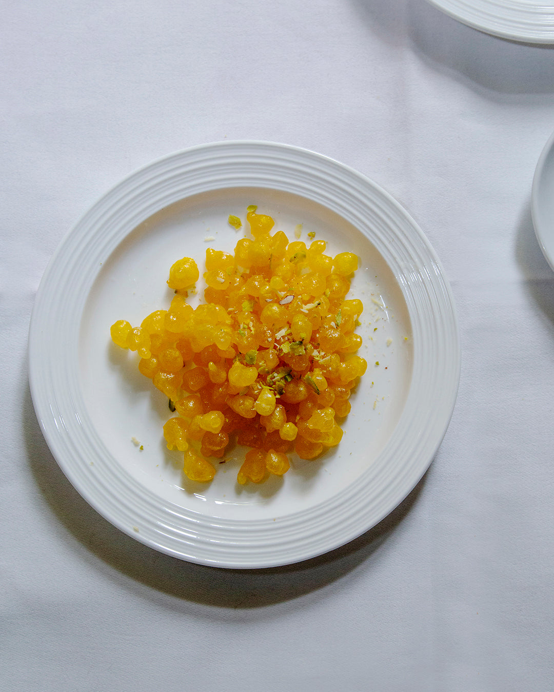 Indulge in the irresistible sweetness of Boondi also known as "Sweet Bundi". Made with high-quality Besan and garnished with saffron, pistachios, and almonds, these tiny golden pearls of succulent flavor are deep-fried in pure clarified butter for a rich and sensational taste. Try the best Tradinal Indian Boondi (Badana) in Berlin.